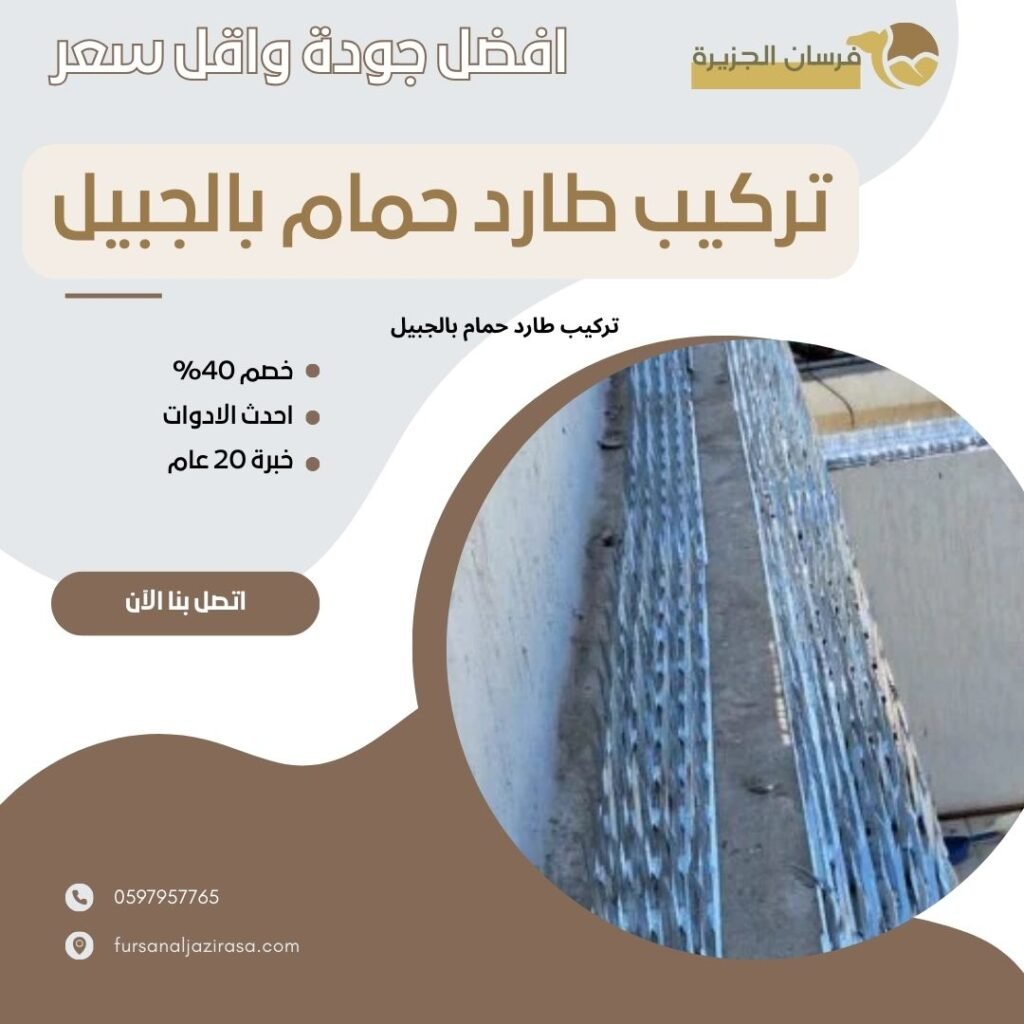 تركيب طارد حمام بالجبيل 0597957765 اتصل الان بخصم 30% الحمام قد يبدو طائرًا بريئًا في الظاهر، لكنه في الحقيقة من أكثر الأسباب اللي تسبب الإزعاج والضرر للبيوت والأسطح والمباني. في مدينة زي الجبيل، وبسبب قربها من الساحل وكثرة المباني المفتوحة، بقت الطيور – خصوصًا الحمام – بتختار الأسطح والشبابيك والأجهزة الخارجية أماكن للتعشيش والوقوف. وده بيؤدي إلى مشاكل كبيرة جدًا زي: